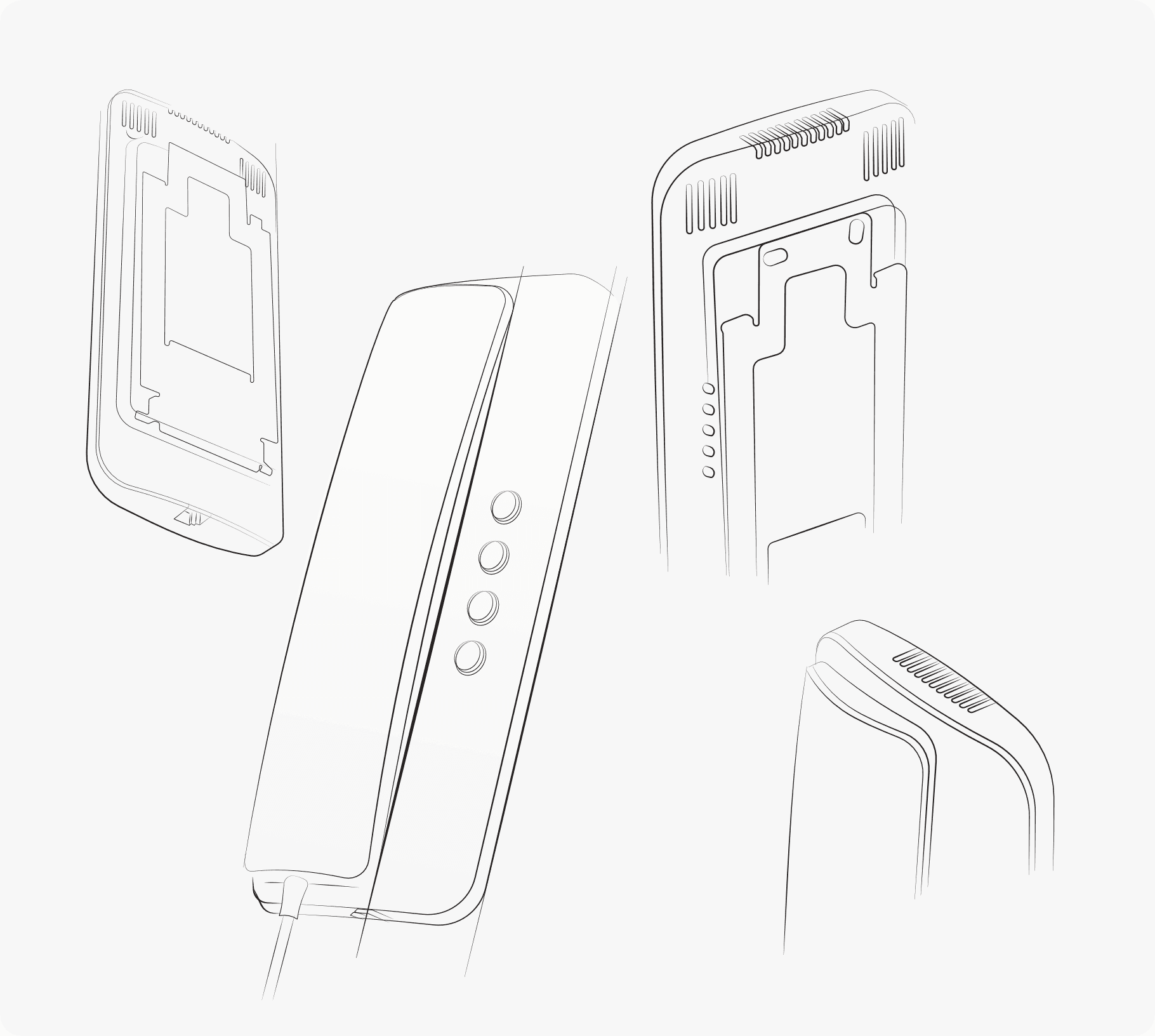 We design enclosures and forms for electronic devices, focusing on ergonomics, aesthetics and intuitive usability. We create thoughtful solutions that support user comfort, easy assembly and service. Our designs combine functionality with attractive appearance, addressing both user and manufacturer needs. We work closely with technical teams, integrating design with technology.
